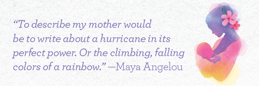 To describe my mother would be to write about a hurricane in its perfect power. Or the climbing, falling colors of a rainbow. —Maya Angelou