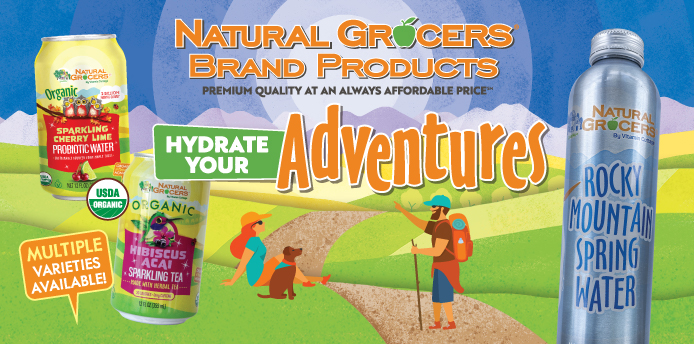 July is for exploration! Hitting the road, the trail, the pool, the park… And what does any great expedition require? Hydration, of course! Meet the Natural Grocers Brand beverages, ready to hydrate your adventures!