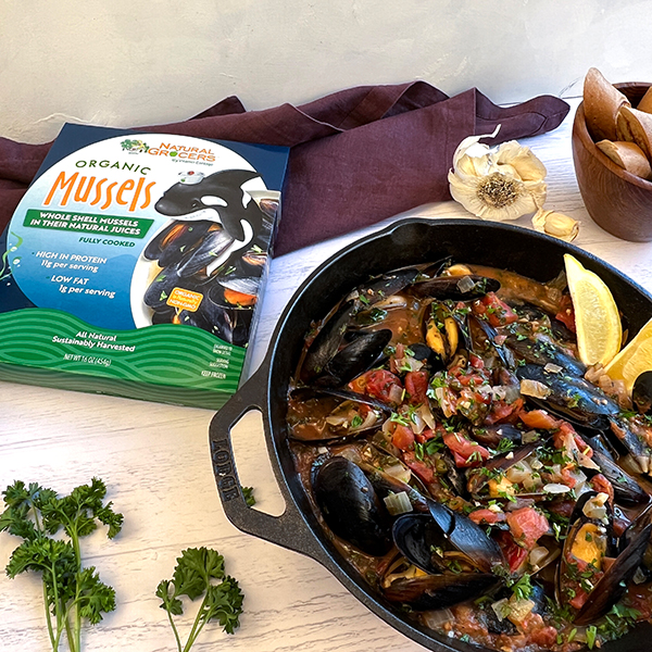 Indulge in the irresistible allure of organic mussels gently simmered in a fragrant white wine, tomato, and caper sauce. Cooking with Natural Grocers® Brand Frozen Organic Mussels is a delightful experience — effortless yet immensely rewarding, perfect for both seasoned chefs and beginners. Whether you're a newcomer to cooking these ocean gems or a seasoned enthusiast, this dish promises a symphony of taste that's sure to impress.