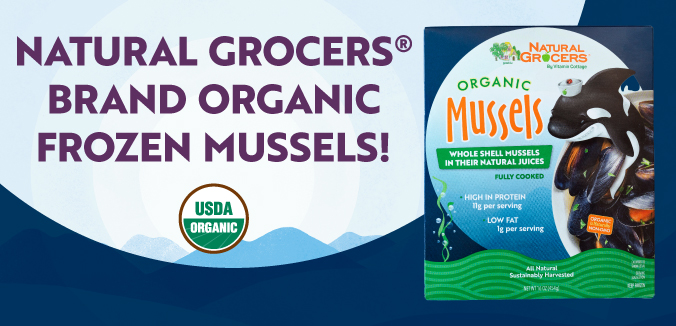 Our whole-shell mussels are fully cooked and deliciously contained in their natural juices. They are also high in protein, low in fat, and rich in nutrients, including iron, B12, and omega-3 fatty acids. And every meaty morsel is loaded with rich, clean flavor! So go on and treat yourself to a seafood dinner from the comfort of home. Because the Natural Grocers Brand is doing it again—bringing the highest restaurant-quality cuisine to a freezer near you.