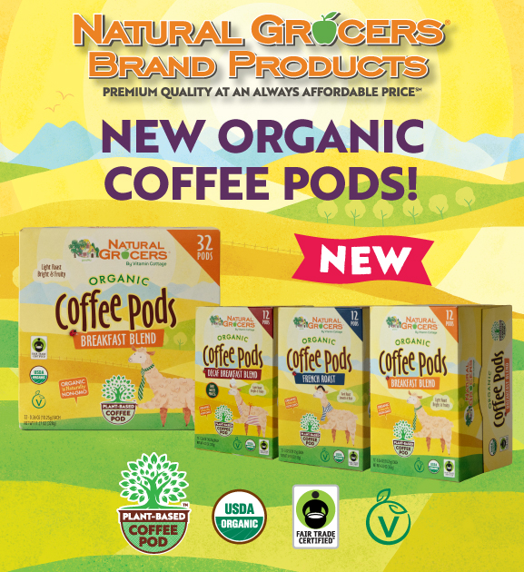 Natural Grocers Brand Organic Coffee Pods are for you! The pods are certified compostable in industrial composting facilities and filled with your favorite styles of Certified Organic, Fair Trade brews.