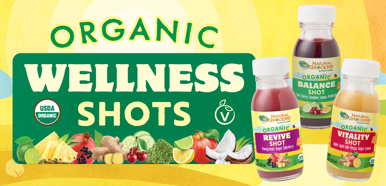 A good day starts with a good decision—like reaching for a shot of wellness, Natural Grocers Brand–style. Our Organic Wellness Shots are 2 ounces of fruity deliciousness packed with function and flavor. Whether you’re after an energizing boost, a refreshing daily tonic, or ingredients that promote the normal, healthy function of your immune or digestive system—there’s a blend for it.