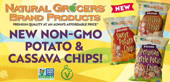 Try them all, dip them, share them with your friends, and most importantly—discover a new way of telling time, yourself—the time it takes to enjoy a bag of Natural Grocers Brand Non-GMO Potato & Cassava Chips!