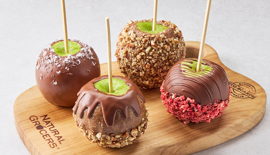 Caution! This “caramel” sauce is dangerously delicious. Made with unrefined, natural ingredients and so easy to make, you’ll want to eat it on everything, but we suggest making a classic fall favorite—caramel apples! And for those who prefer dipping, we’ve also included instructions on building a caramel apple board with dipping sauce.
