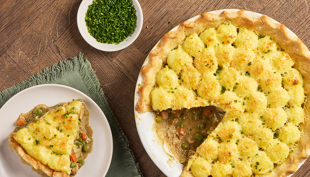 A pot pie is perfect for transforming holiday leftovers into a hearty and delicious crowd pleaser. Our Holiday Leftovers Pot Pie combines sautéed vegetables with tender turkey, savory ham, and creamy gravy, all topped with fluffy mashed potatoes and baked in a flaky, gluten-free crust. If you don’t have leftover ham or turkey, no problem! Simply substitute 2 cups of any cooked meat of your choice.