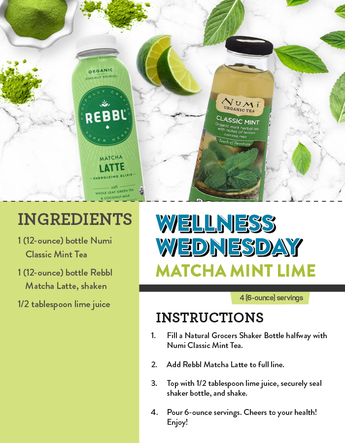 Mint, even though there is no caffeine in this green goodness ingredient, it ups alertness. It has also been shown to support retention of facts—like matcha contains caffeine—and other cognitive functions. It's strong and refreshing smell promotes relaxation when feeling stress and rejuvenates the mind. Mint has adaptogenic properties that support healthy cortisol levels and boost the body's natural resilience to stress. Mint is also soothing to the digestive tract and supports relaxation of the smooth muscles of the respiratory tract.