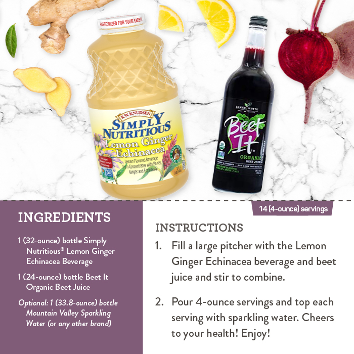 Beetroot juice: Beetroot juice isn’t typically the first thing that comes to mind when thinking about ways to support our immune health. Turns out, however, it’s actually an immune health powerhouse. This is because beetroot juice serves as a source of dietary nitrate, which stimulates production of nitric oxide within the body. In addition to supporting healthy relaxation of blood vessels, nitric oxide promotes strong, robust mucosal immunity in the respiratory tract. Stress depletes nitric oxide levels, thus reducing the amount of nitric oxide available to support mucosal immunity in the respiratory tract. Beetroot juice, by helping us maintain adequate levels of nitric oxide supports immune competence and immune function in the respiratory tract during times of stress.
